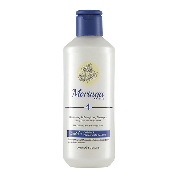 شامپو مغذی و انرژی بخش مورینگا امو کد 4 مناسب موهای رنگ شده و دکلره