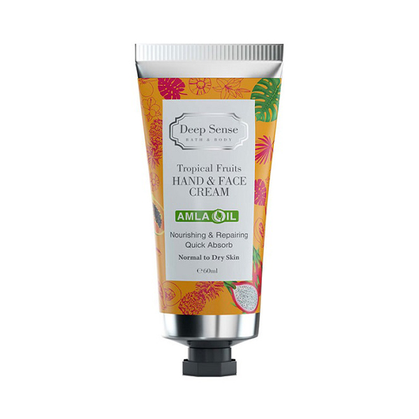 کرم مرطوب کننده دست و صورت دیپ سنس تروپيكال محصولی با کیفیت از شرکت دیپ سنس است که حاوی میوههای تروپیکال بوده و به مرطوب کردن عمقی بافت پوست میپردازد و موجب نرمی و شادابی پوست می شودهمچنین دارای خاصیت ترمیم کنندگی پوست نیز میباشد. در فرمولاسیون این محصول روغن آرگان، روغن آووکادو، موم زنبور عسل و عصاره میوههای استوایی به کار رفته است که تاثیر موثری در تغذیه رسانی و رطوبت رسانی پوست دست و صورت دارد.