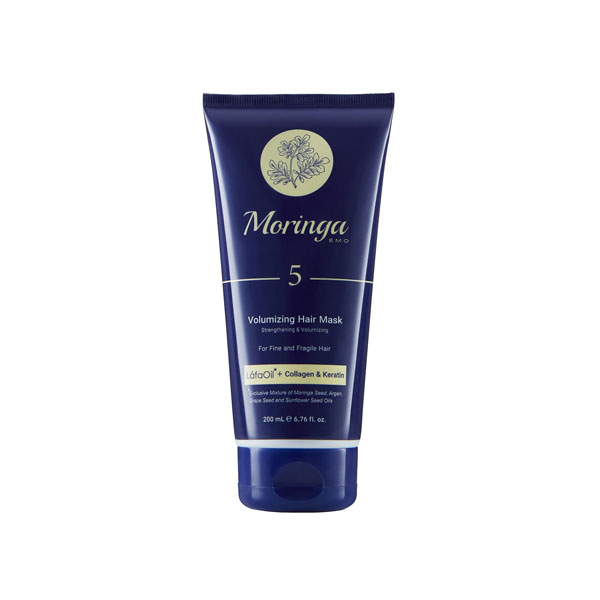 ماسک مو حجم دهنده مورینگا امو مدل 5 مخصوص موهای نازک و شکننده حجم 200 میلی لیتر