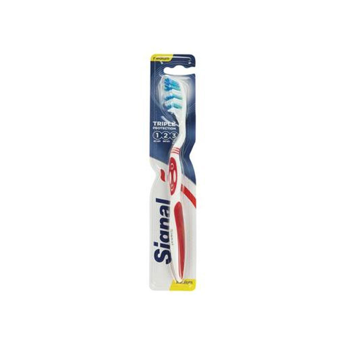 مسواک سیگنال مدل Triple Protection با برس متوسط دسترسی به دندان های عقب را آسان می کند. با استفاده از این مسواک، نواحی بین دندان ها و پشت دندان ها راحت تر تمیز می شوند. برس مسواک از مو با الیاف نرم ساخته شده است و هیچ گونه آسیبی به دندان و لثه وارد نمی کند. دسته محصول کاملا ارگونومیک بوده و متناسب با اندازه دست طراحی شده است. این مسواک دارای طرح ها و رنگ های مختلفی است و به مصرف کننده اجازه می دهد تا مطابق سلیقه خود انتخاب کند.