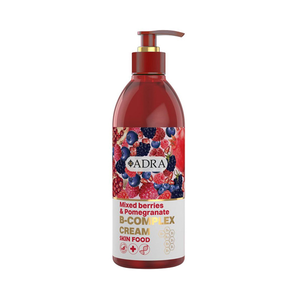 کرم مرطوب کننده دست و بدن بلوبری، تمشک و انار آدرا حجم 350 میلی لیتر