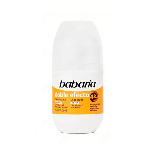 دئودورانت رولی ضد تعریق باباریا مدل دابل افکت دارای ماندگاری 48 ساعت به طور موثر از پوست در برابر تعریق محافظت می کند. این رول ضد تعریق نرمی زیر بغل را فراهم می کند و رشد مو را کند می کند. علاوه بر این، حاوی ویتامین E، به عنوان یک آنتی اکسیدان فعال است.