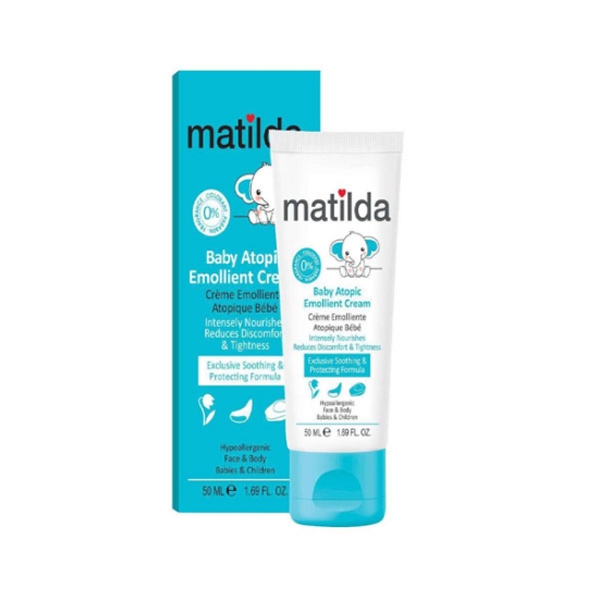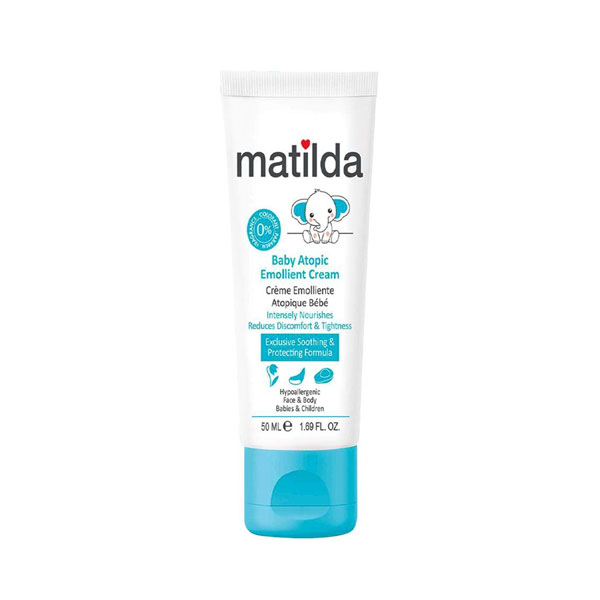 کرم مرطوب کننده آتوپیک کودک ماتیلدا، التیام بخش قوی علائم اگزما و کاهش دهنده التهاب پوست بوده و از خشکی شدید پوست و اگزمای آتوپیک جلوگیری می‌کند. این محصول، با داشتن ترکیبات گیاهی به رفع خشکی پوست و اگزمای آتوپیک در کودکان کمک می‌کند. عصاره آلوئه ورا موجود در کرم امولیانت ماتیلدا آبرسان قوی است و به ترمیم پوست و حفظ سد دفاعی پوست کمک می‌کند. همچنین شی باتر و ویتامین E موجودر در کرم مرطوب کننده کودک ماتیلدا در رفع خارش و خشکی پوست موثر است و دارای فرمولاسیون هیپوآلرژنیک، فاقد پارابن و رنگ است.