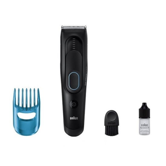 ماشین اصلاح سر و صورت براون مدل HC5010 دارای تیغه‌های تیز با ماندگاری بالا، شانه‌ی قابل‌تنظیم، قابلیت اصلاح در ۹ اندازه‌ی مختلف، قفل‌شدن طول اصلاح، منبع تغذیه‌ی برق و باتری قابل‌شارژ و قابلیت ‌شست‌وشوست.
