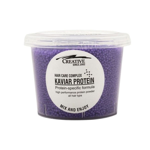 پروتئین خاویار کریتیو بنفش، یک محصول تخصصی در زمینه مراقبت از مو است که به ویژه برای موهای رنگ شده، دکلره شده و پلاتینه طراحی شده است. این محصول با فرمولاسیون غنی از عصاره خاویار و ترکیبات مغذی، به عمق تارهای مو نفوذ کرده و آسیب‌های ناشی از فرآیندهای شیمیایی مانند رنگ کردن و دکلره را ترمیم می‌کند.