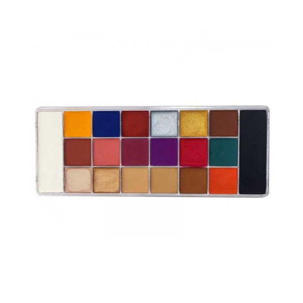 این پالت با 20 رنگ پیگمنت فشرده کرمی را در یک محفظه پلاستیکی مناسب و محکم پر می کند که به راحتی با اسفنج یا براش برای صورت و بدن قابل استفاده است رنگ های آن شامل طلایی و نقرهای، صورتی، بنفش، قرمز، زرد، آبی، سبز و قهوهای (بهعلاوه سیاه و سفید) است.