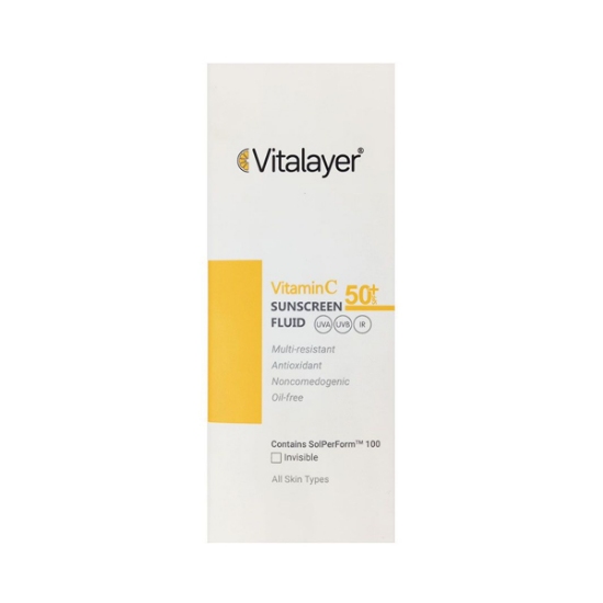 فلوئید ضد آفتاب بی رنگ ویتالیر حاوی ویتامین سی دارای بافت سبک و روان است که با ایجاد ظاهری یکدست و جذب سریع علاوه بر آبرسانی و حفظ رطوبت موجود در پوست به کاهش میزان انسداد منافذ پوستی نیز کمک میکند. این فلویید ضد آفتاب از پوست صورت در برابر اشعههای مضر خورشید محافظت نموده و به دلیل وجود ترکیبات ویتامین سی و هیالورونیک اسید از پوست در برابر اثرات مخرب رادیکالهای آزاد حفاظت مینماید. بافت محصول فاقد چربی است و استفاده از آن برای انواع پوست مناسب است و همچنین در برابر آب و تعریق مقاوم میباشد.