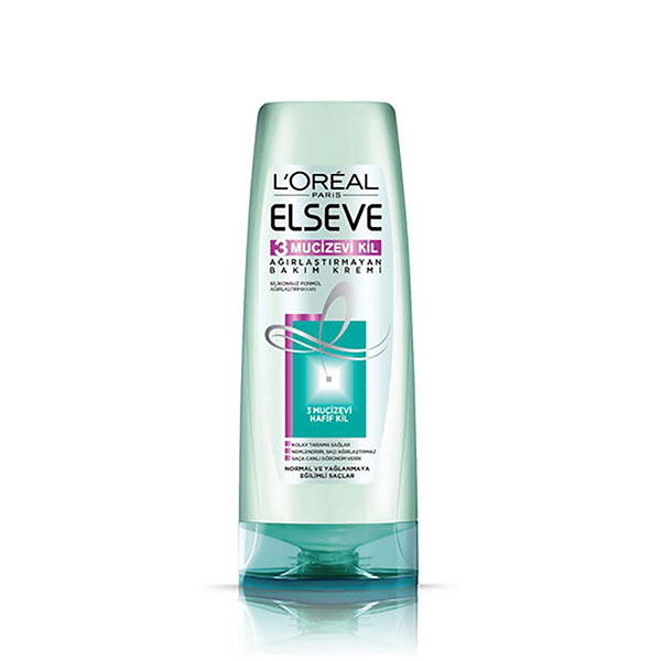 شامپو نرم کننده مو لورآل السیو (Elseve) 3Mucizevi kil با حجم 360 میلی لیتر مخصوص موهای نرمال تا چرب محصولی دیگر از برند حرفه ای و با سابقه لورآل است. این نرم کننده با خاصیت ضد چربی مو رشته های نازک مو را براق، درخشان و شاداب خواهد نمود.