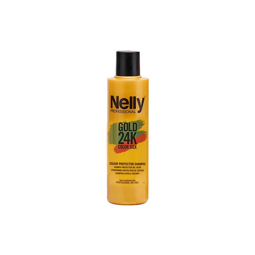 مواد موثره موجود در شامپو تثبیت کننده و تقویتی موها رنگ شده لاین کالر سیلک گلد نلی پروفشنال رنگ موها را تثبیت می نماید و موهای آسیب دیده از رنگ و مش را ترمیم می نماید. موها را نرم کرده و جلوه براق و زیبایی به موهای شما می بخشد.“محصولات گلد نلی” لاین جدید درمانی و مراقبتی مو از برند نلی. سری محصولات گلد نلی حاوی ذرات ریز طلای ۲۴ عیار بوده که ضمن جلوگیری از فرسودگی مو، موجب درخشندگی فوق العاده خیره کننده موها می شود.
