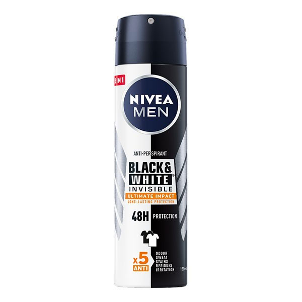 اسپری ضد تعریق مردانه نیوآ مدل Invisible Black and White Original  دئودرانتی با فرمولاسیون حاوی آنتی باکتریال و آلومینیوم کلراید است که هیچ لکه و ردی بر روی لباس برجای نمیگذارد،این ضد تعریق مناسب برای استفاده هنگام پوشیدن لباس مشکی و سفید است و عملکرد آن به گونه ای است که نه ردی از سفیدی بر روی لباس های مشکی و نه لکه زردی بر روی لباس های سفید می گذارد،تحرک و افزایش فعالیت باعث افزایش تعریق بدن و ایجاد بوی نامطبوع میشود.محصولات ضد تعریق علاوه بر جلوگیری از افزایش تعریق، باعث ایجاد بوی خوش می شوند.