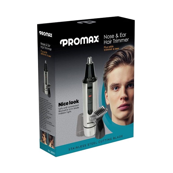 موزن گوش و بینی پرومکس مدل 3250T با طراحی بی نظیر دارای بدنه تمام استیل بوده که در اثر ضربه و سقوط بسیار مقاوم می باشد همچنین جهت رعایت بهداشت بیشتر، دارای درب پوش پلاستیکی شفاف می باشد. پرومکس Promax مدل 3250 دستگاهی است بسیار کوچک و سبک که توسط یک باطری قلمی کوچک قابل استفاده می باشد. با داشتن چنین دستگاهی شما می توانید موهای زائد گوش و بینی خود را بسیار سریع و راحت کوتاه نمائید.همچنین به همراه این دستگاه یک خط زن دقیق و کوچک با تیغه استیل نیز می باشد که می توان با اتصال آن به بدنه اصلی دستگاه به راحتی خط ریش و سیبیل و ابرو را مرتب کرد. سیستم چرخشی قطع مو که در این دستگاه تعبیه شده نه تنها استفاده از دستگاه را ایمن نموده است بلکه باعث می شود تا مصرف کننده درد کمتری احساس کند.به علاوه این دستگاه کاملا ضد آب طراحی شده است، لذا می توان در حمام یا محیط های مرطوب دیگر با خیالی آسوده و راحت استفاده کرد. استفاده از موزن گوش و بینی پرومکس مدل 3250T بسیار ساده است فقط کافیه باطری 1.5 ولتی که به همراه دستگاه نیز می باشد را درون جایگاه قرار داده و سپس دستگاه را روشن کرد و با دقت به سمت موهای گوش و بینی یا صورت بگیرید و به آرامی اصلاح نمایید.جهت استفاده از بالاترین کارائی دستگاه فقط از باتری های آلکالاین استفاده نمایید و به هیچ عنوان از باطری های معمولی یا باطری های شارژی استفاده نکنید زیرا موجب کاهش کارایی دستگاه می شود. مزیتی که در این دستگاه بکار رفته شده وجود لامپی است که دقیقا در کنار سری قرار گرفته شده، این چراغ بسیار ظریف به منظور ایجاد نور کافی در هنگام استفاده از دستگاه بوده و امکان استفاده از دستگاه را بی نهایت راحتتر می کند. همچنین به همراه این دستگاه یک پایه نگهدارنده پلاستیکی نیز می باشد که با استفاده از آن تمامی قطعات همیشه در دسترس بوده و گم نمی شوند.