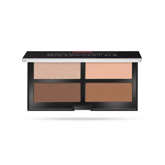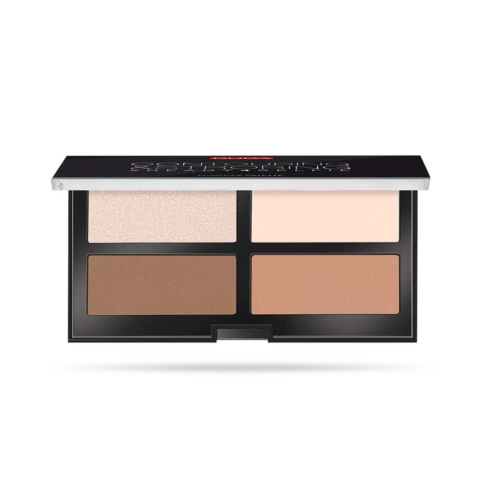 پالت کانتورینگ یک تکنیک آرایشی است که با استفاده از تیرگی و روشنی باعث زاویه دار کردن صورت و ایجاد تقارن در صورت می گردد. استرابینگ یک تکنیک آرایشی است که با ایجاد درخشش موجب تاکید بر قسمت های بر آمده صورت می شود. استفاده همزمان این دو محصول، حالت سه بعدی به صورت می دهد. مورد تایید آزمایشات پوستی واقع شده است.