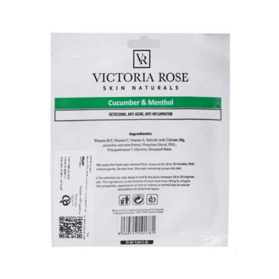 ماسک ورقه ای صورت خیار و نعناع ویکتوریا رز وزن 25 گرم