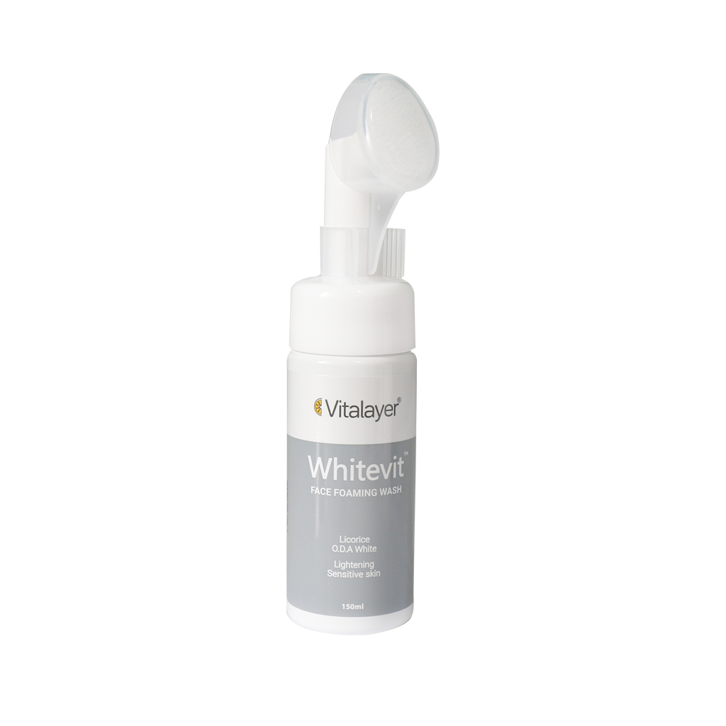 فوم شستشوی صورت ویتالیر مدل وایت ویت حاوی ویتامین C و ترکیبات بسیار موثر در پیشگیری از ایجاد لک و ایجاد شفافیت در پوست است. نحوه عملکرد پمپ و برس نرم سیلیکونی از ویژگیهای خاص این محصول شمرده میشود که علاوه بر پاکسازی عمیق منافذ پوست از الودگی، با ماساژ پوست و بالا بردن جریان خون نیز میتواند فرآیند شفاف سازی را بهبود بخشد. این محصول فاقد پارابن، مواد صابونی و هر گونه مواد حساسیت زا است.